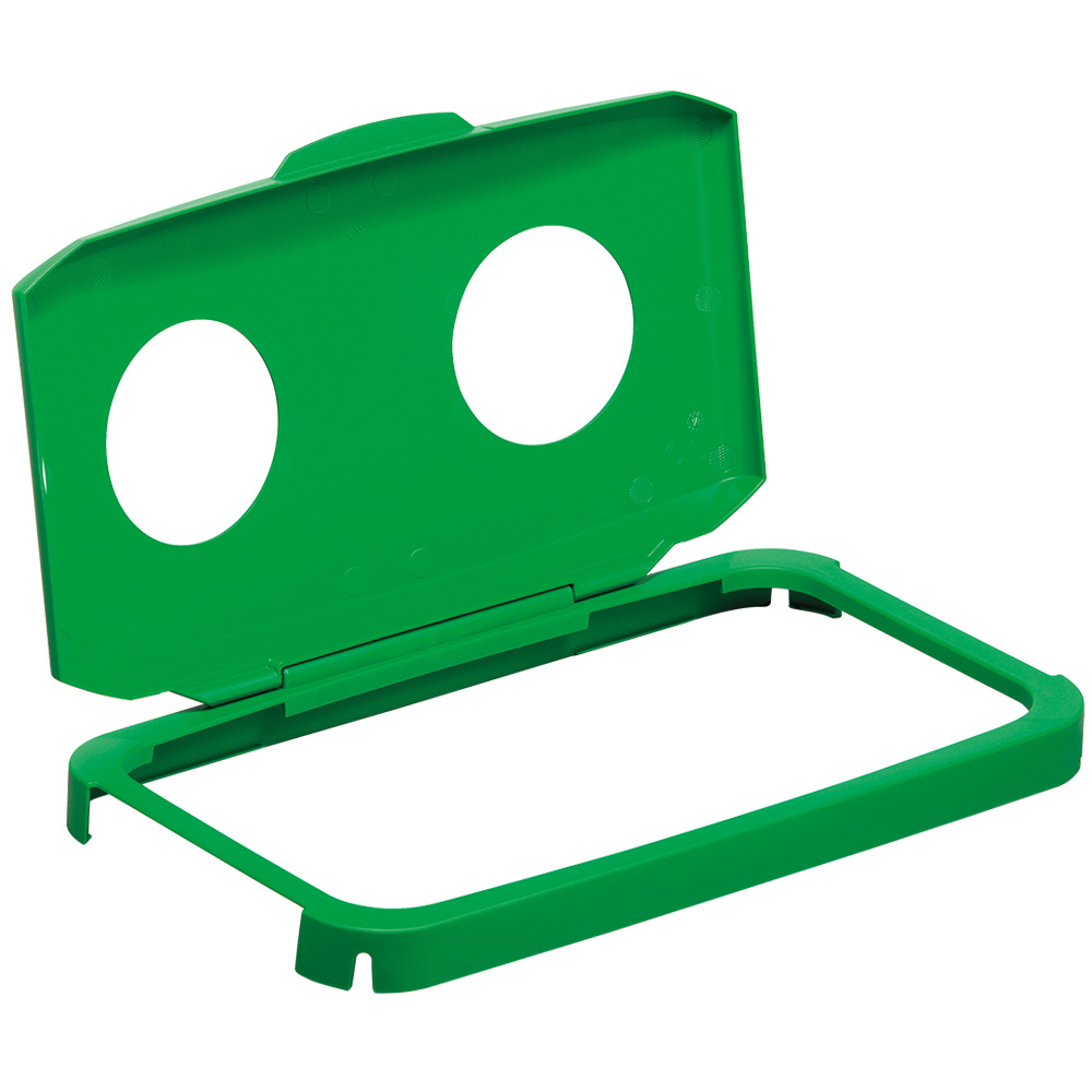 Klappdeckel für Abfall- und Wertstoffbehälter, Deckel mit 2 runden Öffnungen, Rahmen mit Scharnier