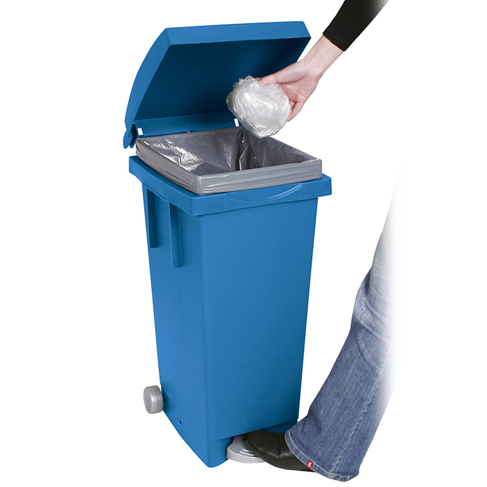 Tret-Abfallbehälter mit Rollen, BxTxH 370 x 510 x 790 mm, Inhalt 80 Liter, blau