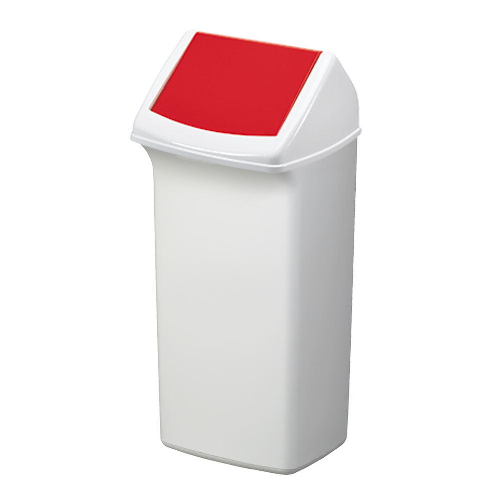 • Rumpf und Deckel in Farbe weiß, Schwingdeckel in Farbe rot