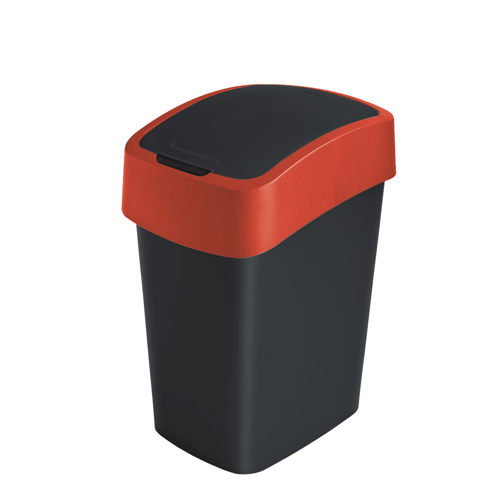 Abfallbehälter mit Schwing- oder Klappdeckel, PP, BxTxH 260x340x470 mm, Inhalt 25 Liter, schwarz/rot