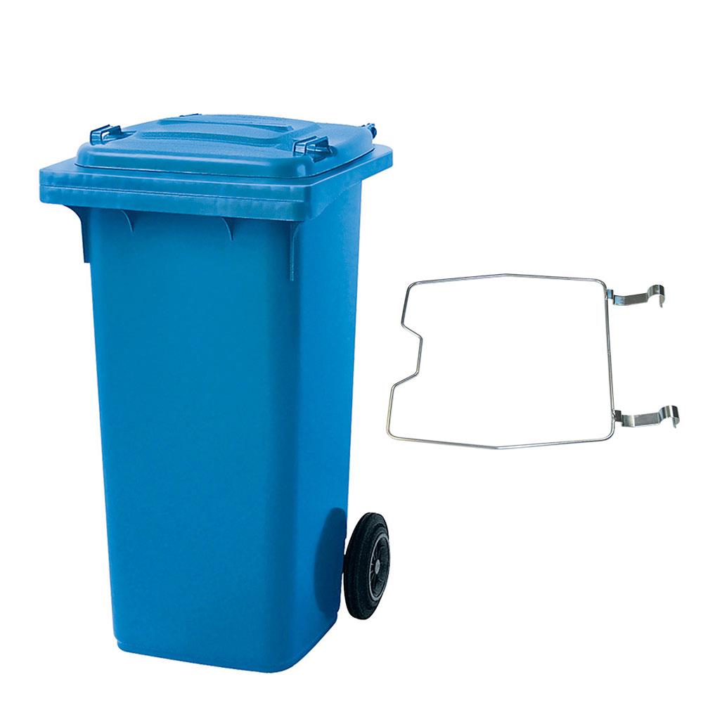 Müllbehälter, 120 Liter, blau, mit Klemmring