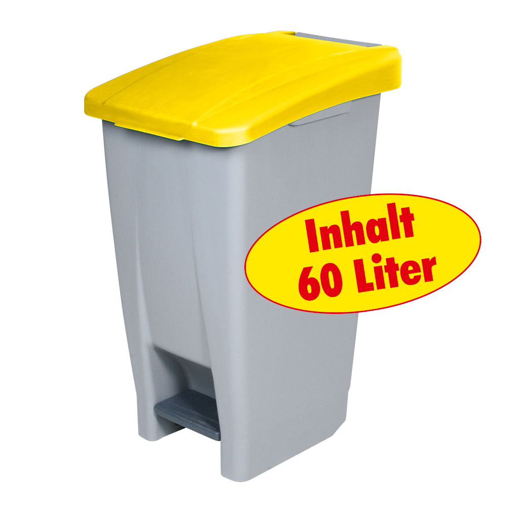Tret-Abfallbehälter mit Rollen, PP, BxTxH 380x490x700 mm, 60 Liter, grau/gelb