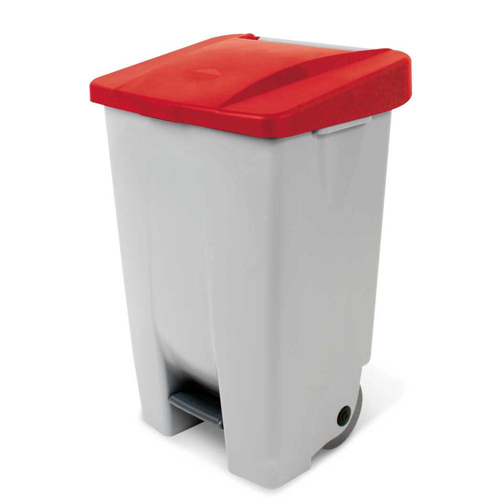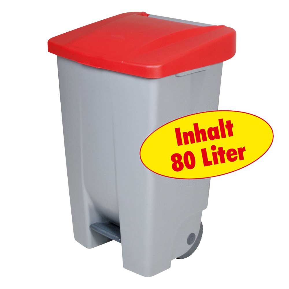 Tret-Abfallbehälter mit Rollen, PP, BxTxH 490x420x740 mm, 80 Liter, grau/rot
