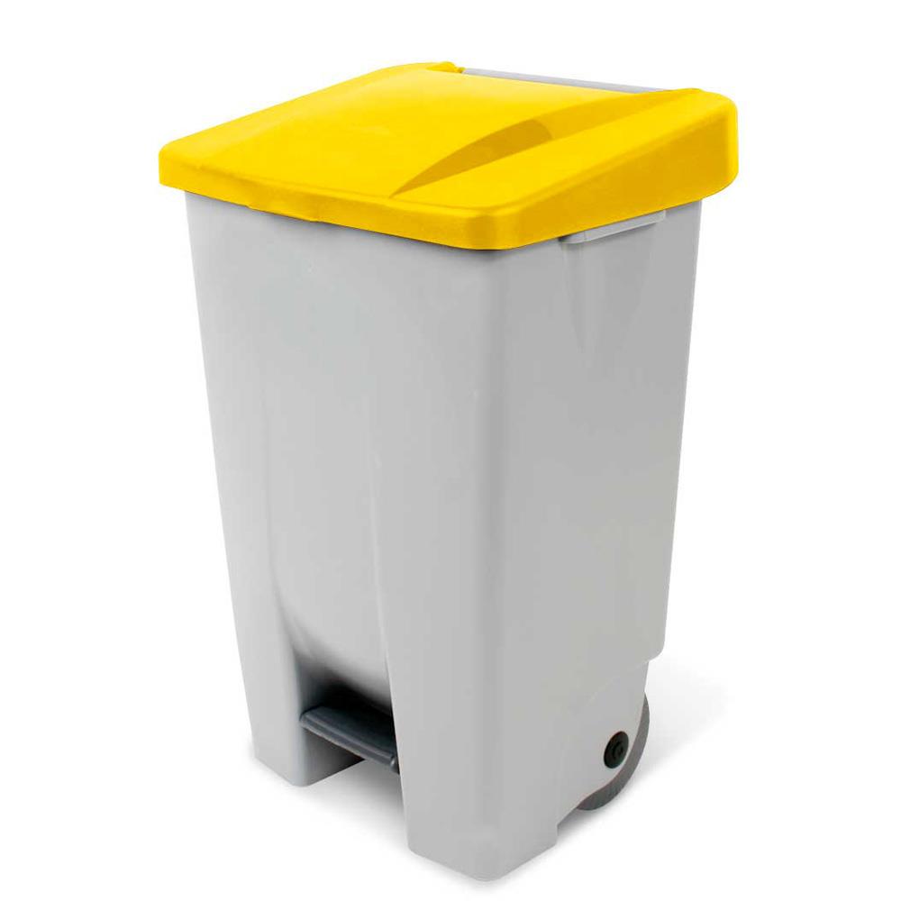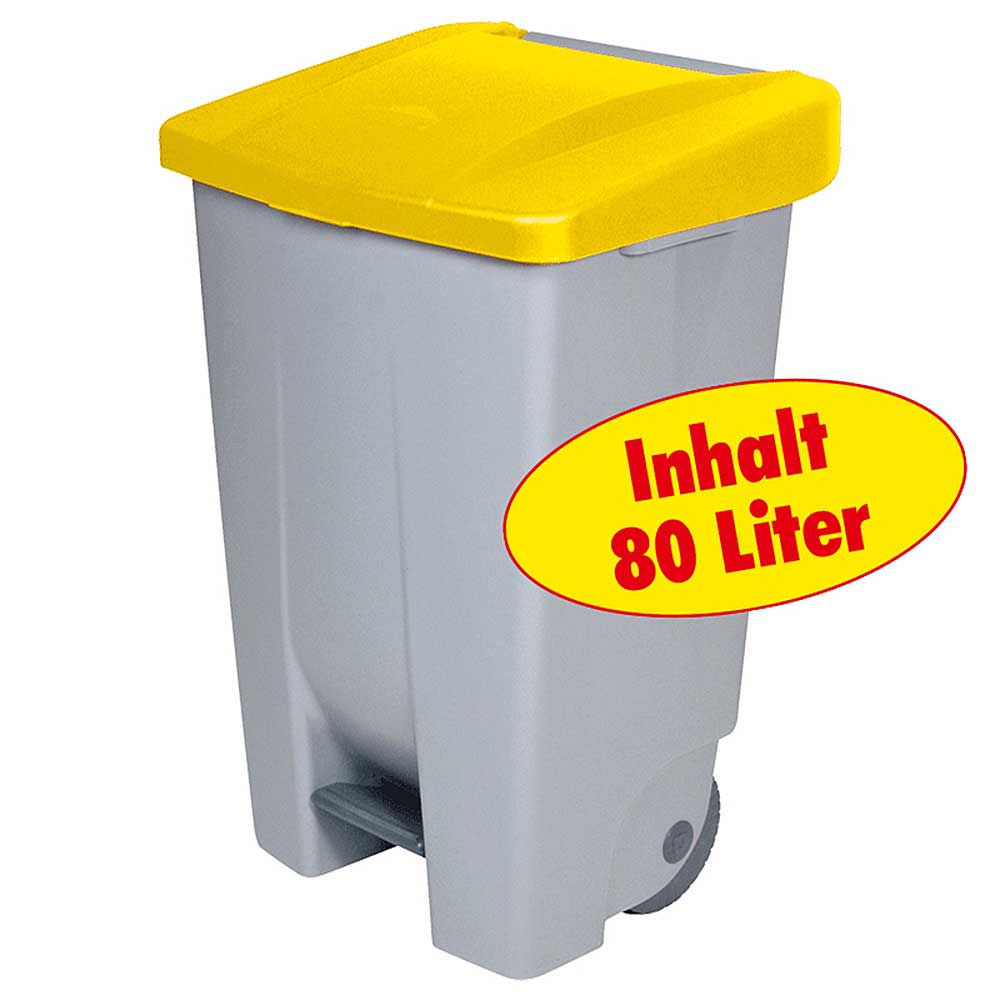 Tret-Abfallbehälter mit Rollen, PP, BxTxH 490x420x740 mm, 80 Liter, grau/gelb