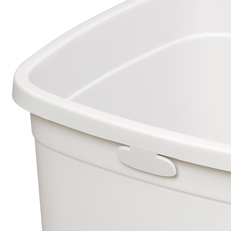 • Robuster Behälter mit integriertem Griff und Müllsackhalter