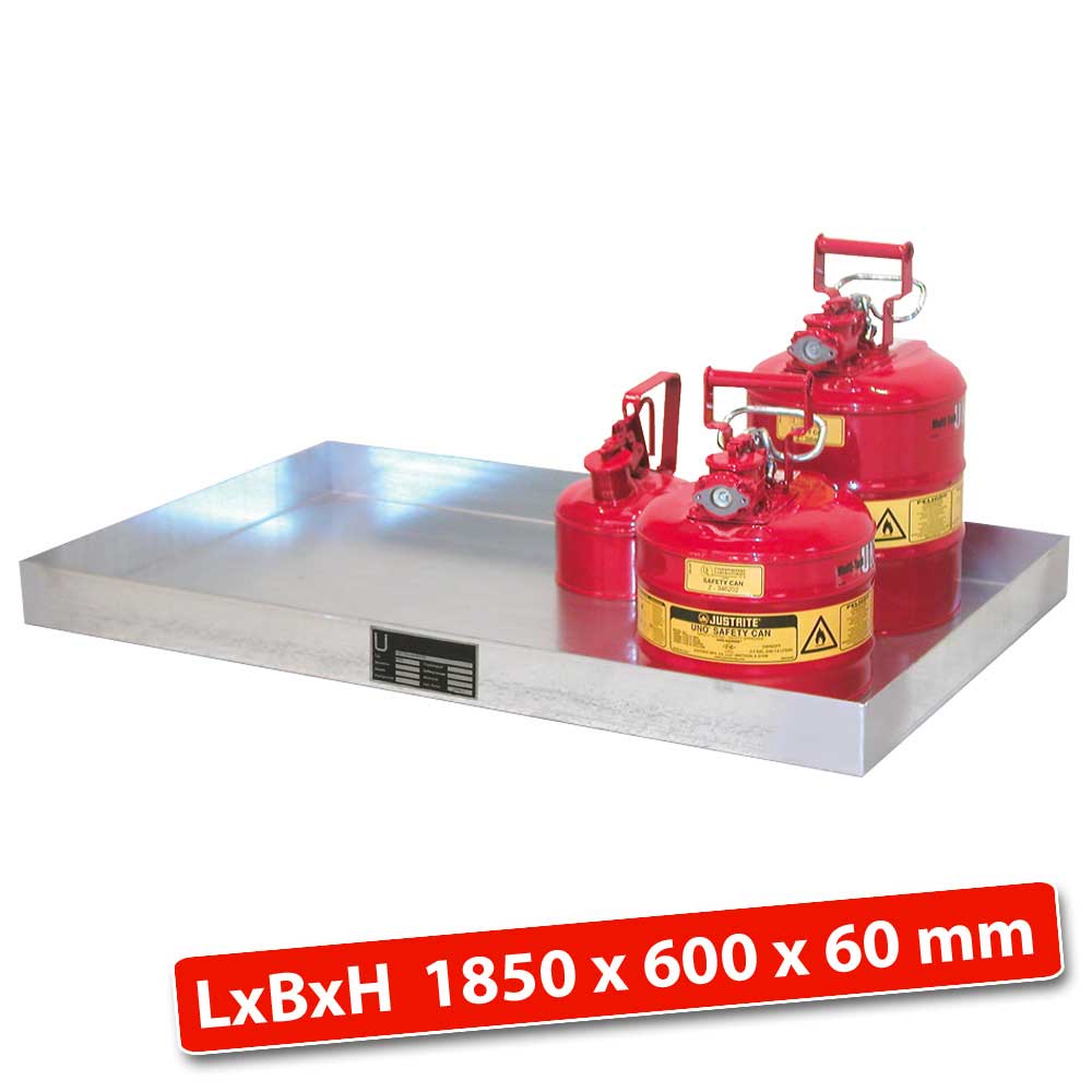 Kleingebindewanne, Volumen 60 Liter, Edelstahl, LxBxH 1850x600x60 mm, Gewicht 33 kg
