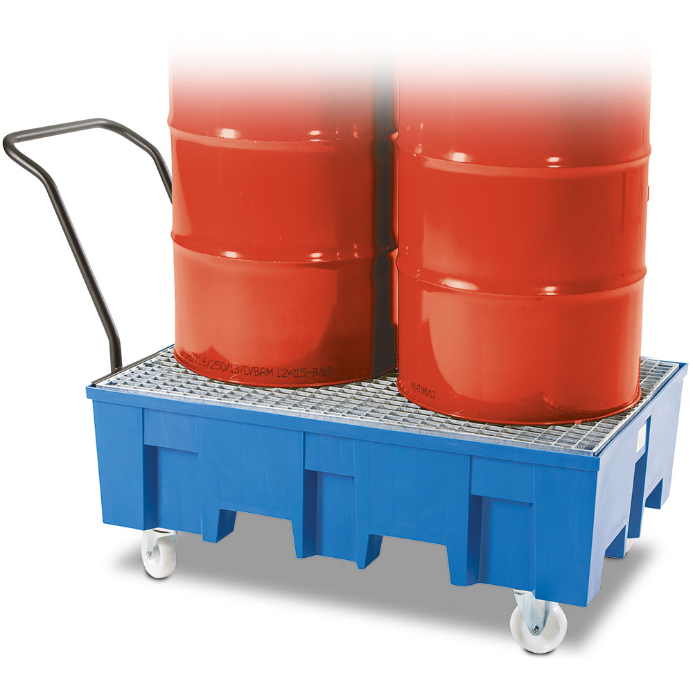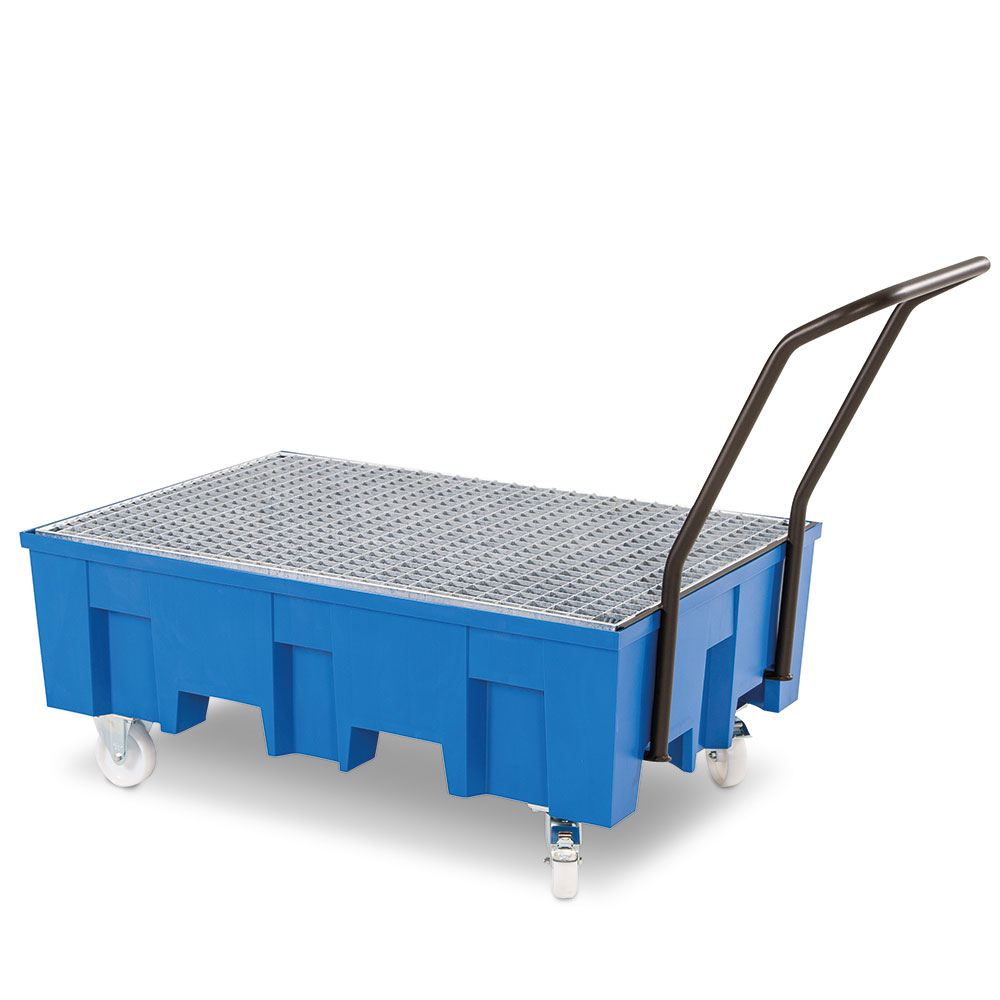 Fahrbare Auffangwanne mit verzinktem Gitterrost, BxTxH 865x1245x1060 mm, Auffangvolumen 220 Liter