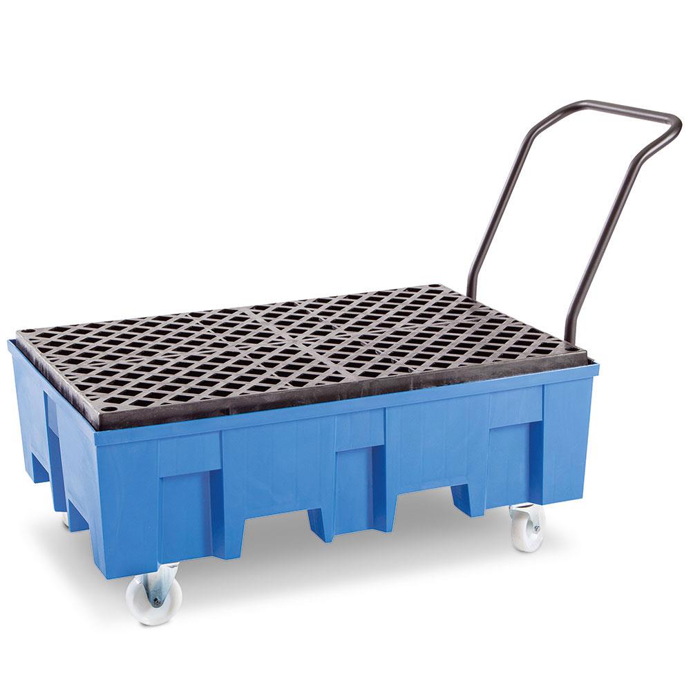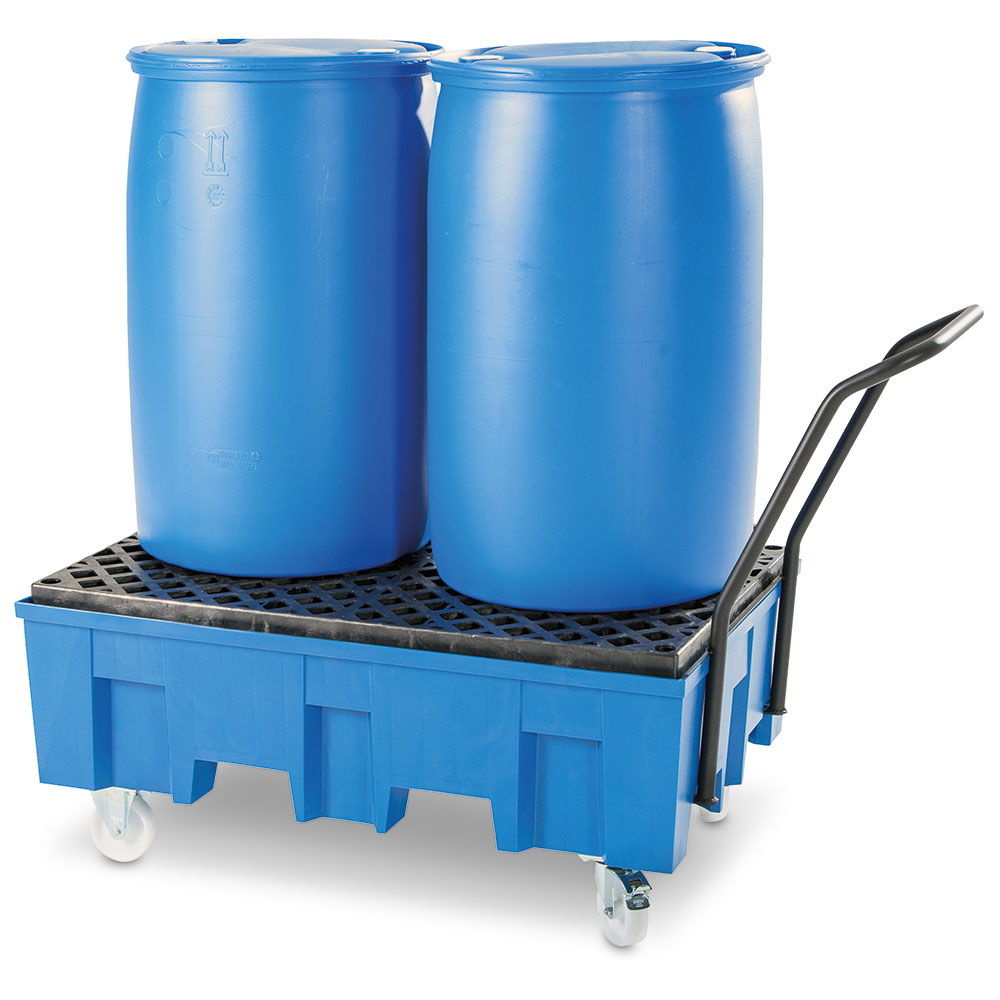 Fahrbare Auffangwanne mit PE-Gitterrost, für zwei 200 Liter-Fässer, Tragkraft bis 620 kg