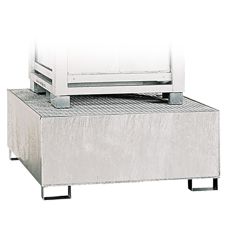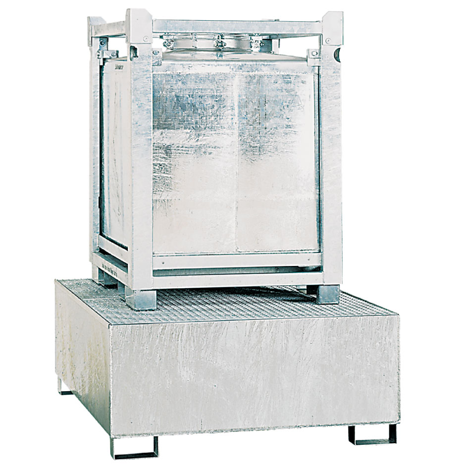 Auffangwannne für Tankcontainer, feuerverzinkt, BxTxH 1460x1460x620 mm, Unterfahrhöhe 100 mm