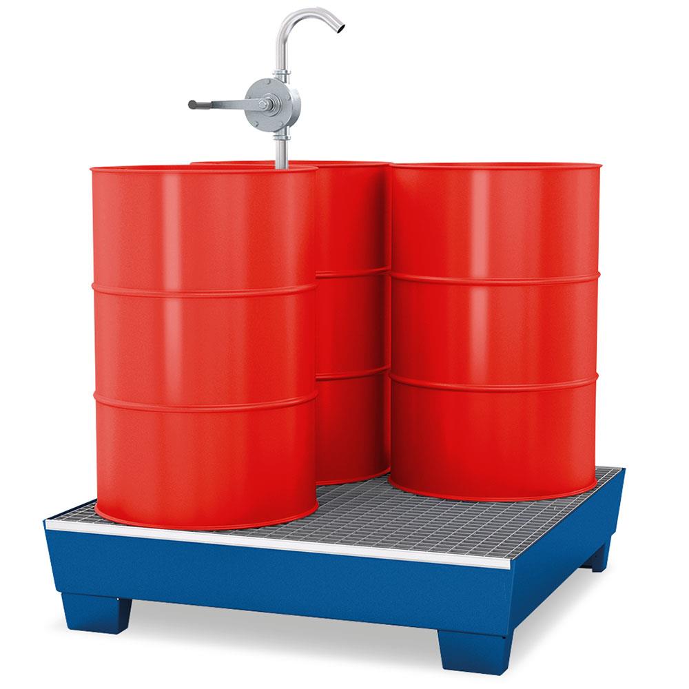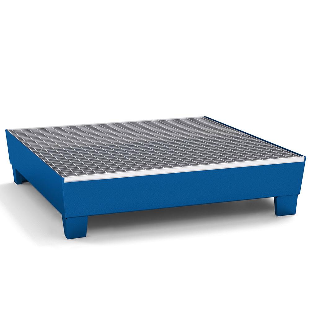 Auffangwanne aus Stahlblech, blau, für 4x 200 Liter-Fässer mit Gitterrost