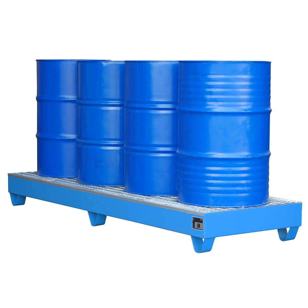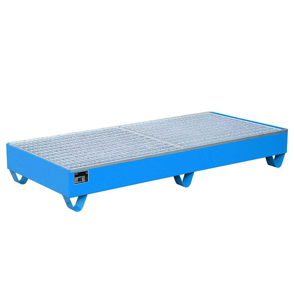 Auffangwanne aus Stahlblech, blau, für 4x 200 Liter-Fässer mit Gitterrost feuerverzinkt