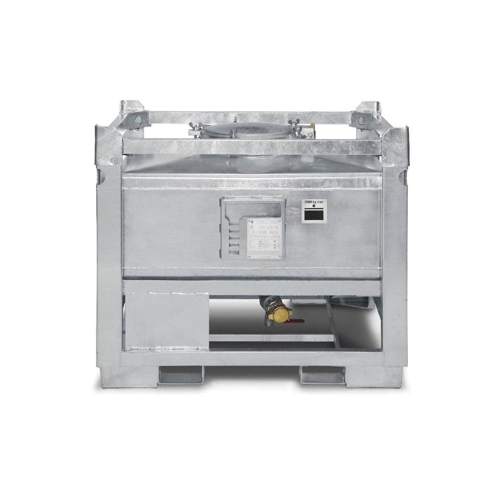 Feuerverzinkter Gefahrgutbehälter mit Bodenauslauf und UN-Zulassung. Ideal zur Sammlung und zum Transport von Gefahrgut-Flüssigkeiten. Einsetzbar und erlaubt für den Transport ohne Einschränkung von Flammpunkt und Wassergefährdungsklasse (WGK). Der einwandige, feuerverzinkter Behälter ist für die passive Lagerung von Gefahrgut-Flüssigkeiten geeignet. Bei aktiver Lagerung erlaubt für Stoffe mit Flammpunkt >55°C bis einschließlich WGK 2. Alle Behälter mit Untenentleerung müssen generell auf einer Auffangwanne gelagert werden.