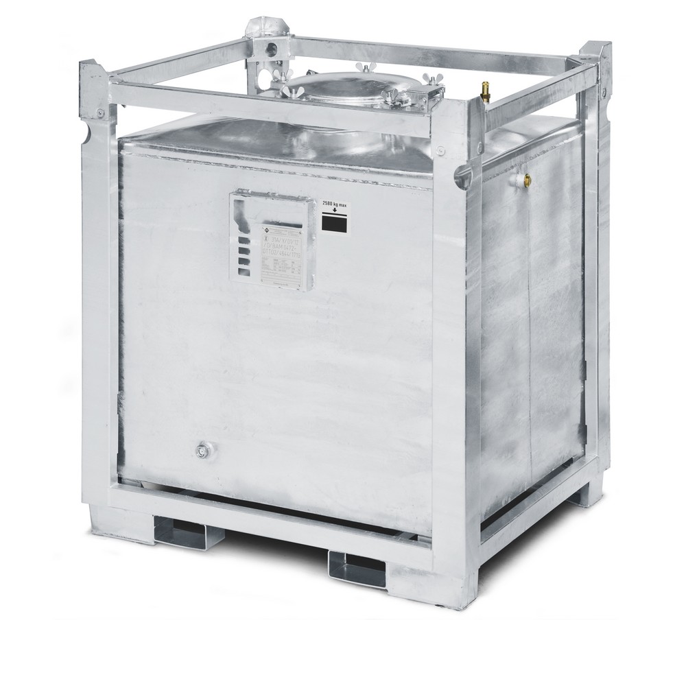Doppelwandiger Gefahrgutbehälter für die Sammlung und zum Transport von Gefahrgut-Flüssigkeiten. Eisetzbar und erlaubt für den Transport ohne Einschränkung von Flammpunkt und Wassergefährdungsklasse (WGK). Der feuerverzinkte Gefahrgutbehälter ist stapelbar, kranbar und ermöglicht jederzeit eine Leckagekontrolle mittels Schauglas im Doppelmantel und Peilstab. Für passive Lagerung erlaubt. Bei aktiver Lagerung erlaubt für Stoffe mit Flammpunkt >55°C bis einschließlich WGK 3. Aufgrund der doppelwandigen Ausführung für Lagerung ohne zusätzliche Auffangwanne zulässig.