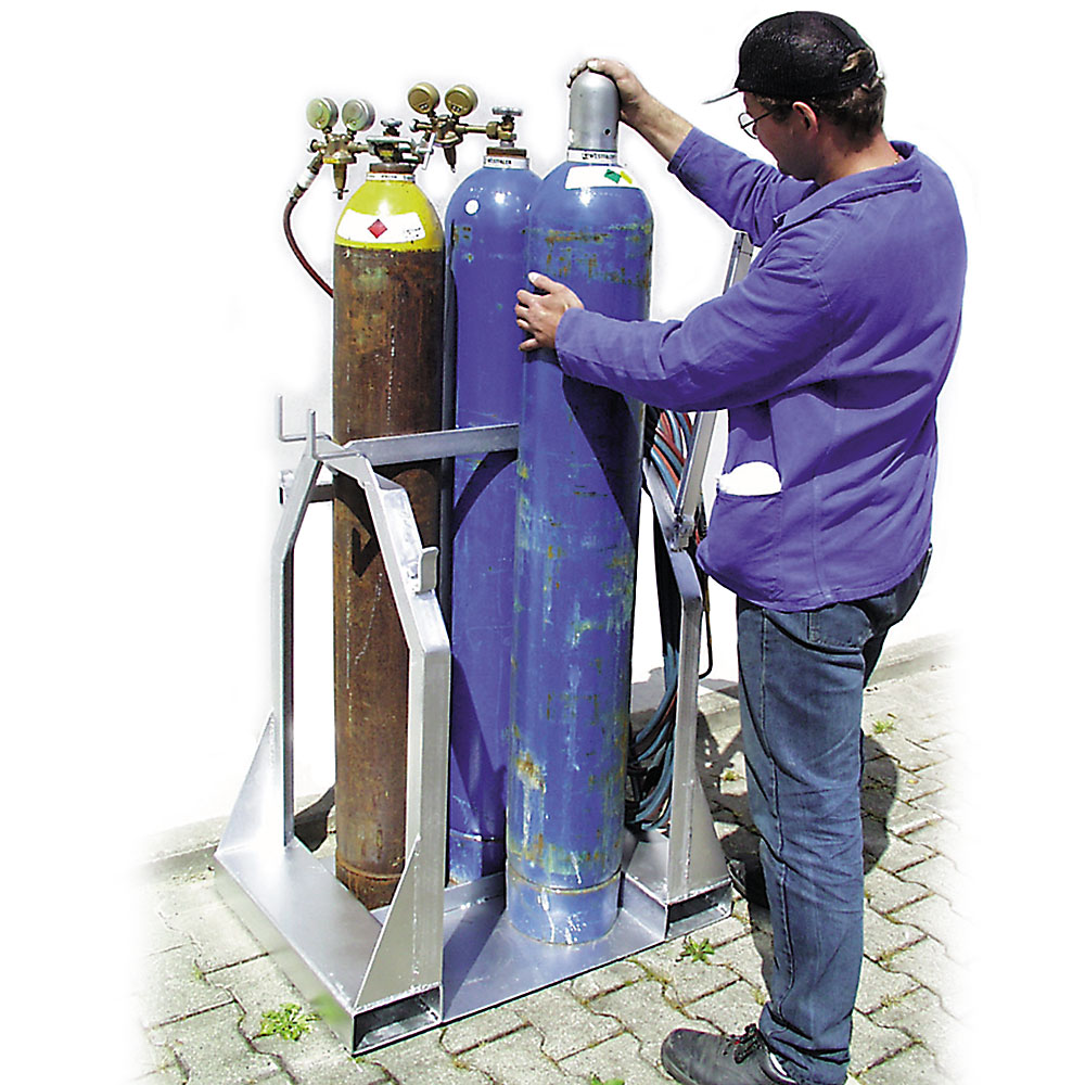 Stahlflaschen-Palette LxBxH 600x860x1000 mm, Stellfläche für 4 Flaschen á 250 mm Ø